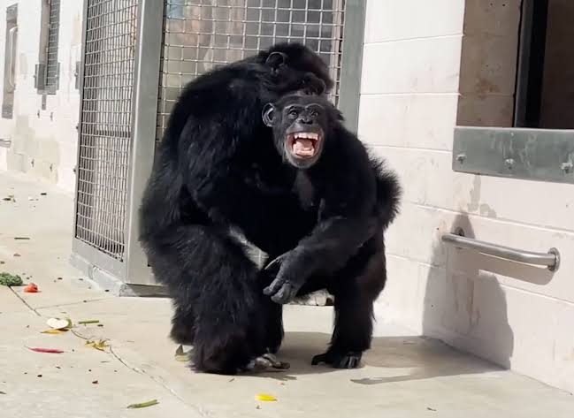 Après une période de quarantaine, elle a été incitée à sortir, avec un peu d'appréhension. "Dwight, le mâle alpha qui domine les chimpanzés l'a invitée à sortir les bras ouverts", explique le soigneur.