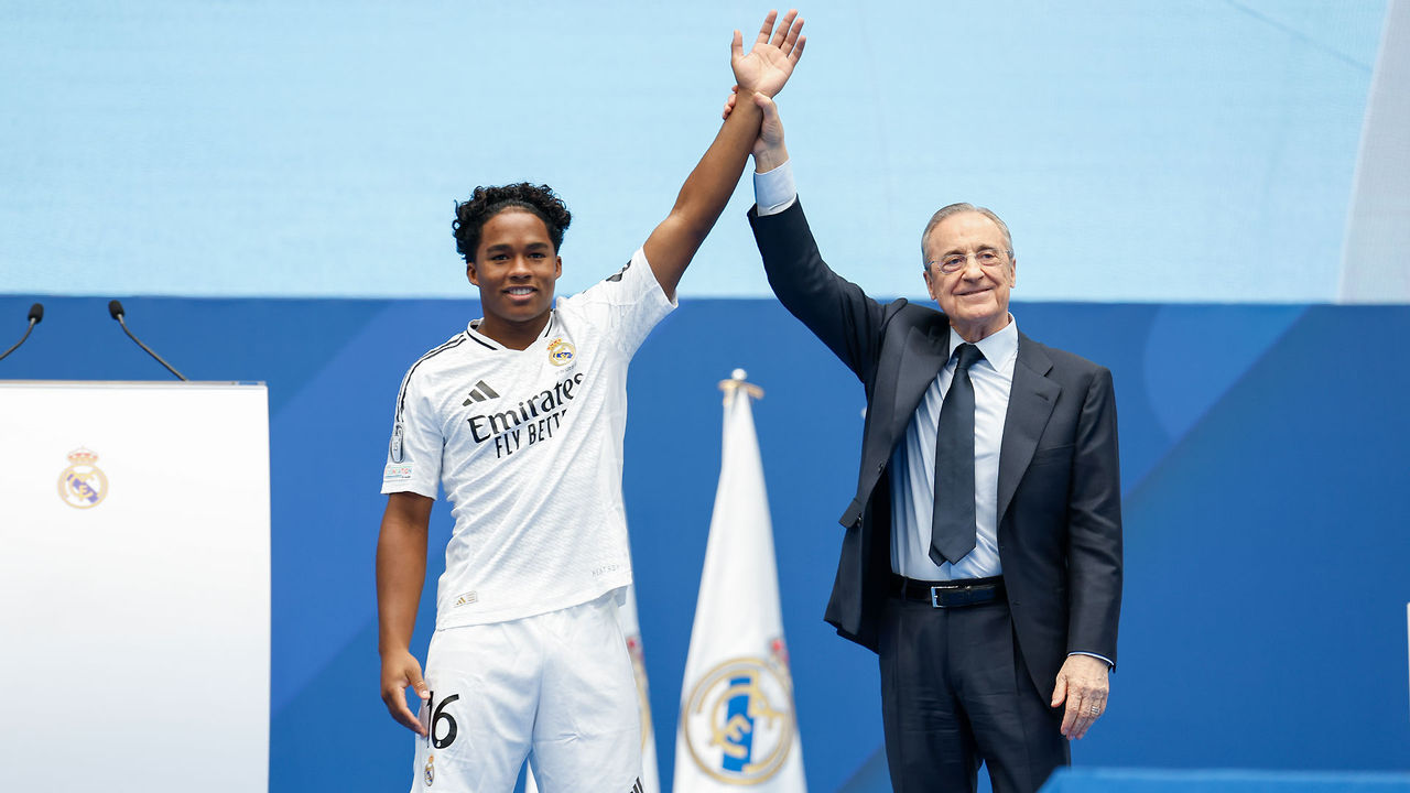 "Il est destiné à jouer à Madrid", a déclaré Florentino Perez, qui a ensuite levé la main de son nouvel attaquant. "Avec lui, nous continuons notre politique visant à recruter les meilleurs joueurs du monde et les jeunes les plus prometteurs, les futures stars", a ajouté le président du Real Madrid.