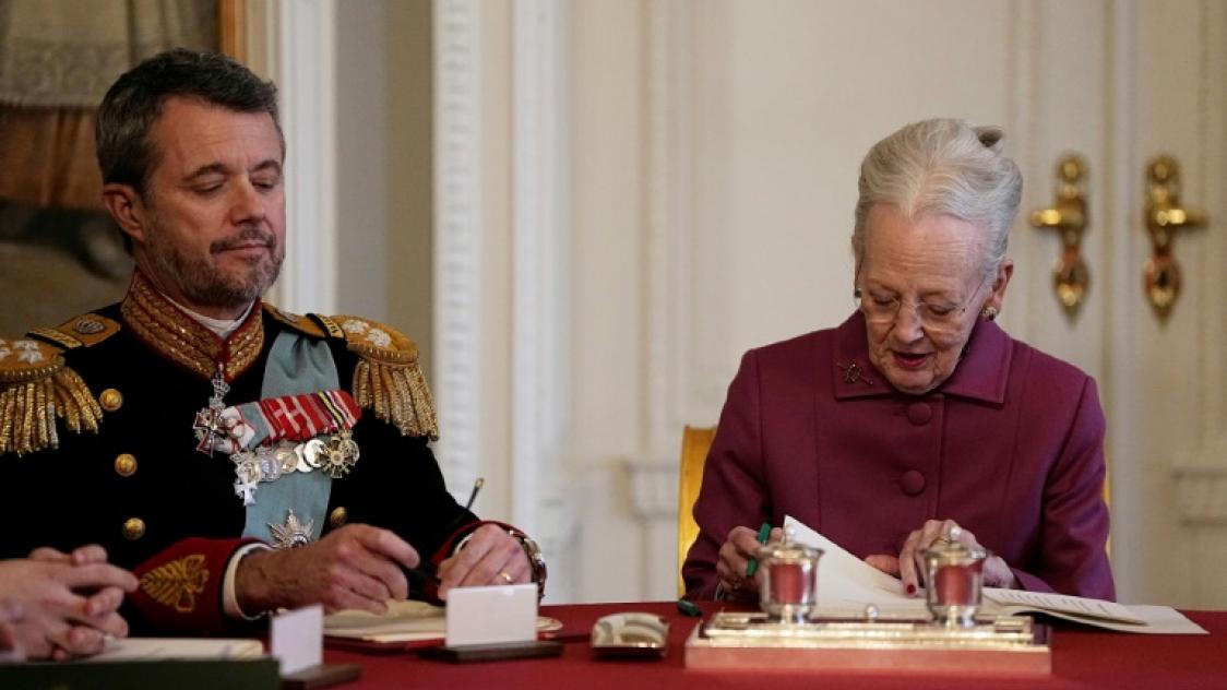 A peine une heure avant la proclamation du nouveau souverain, la reine Margrethe II avait signé au cours d'une réunion du Conseil d'Etat en présence du gouvernement son acte d'abdication, une première en 900 ans au Danemark, faisant de son fils aîné de 55 ans, l'héritier du trône, le nouveau monarque.