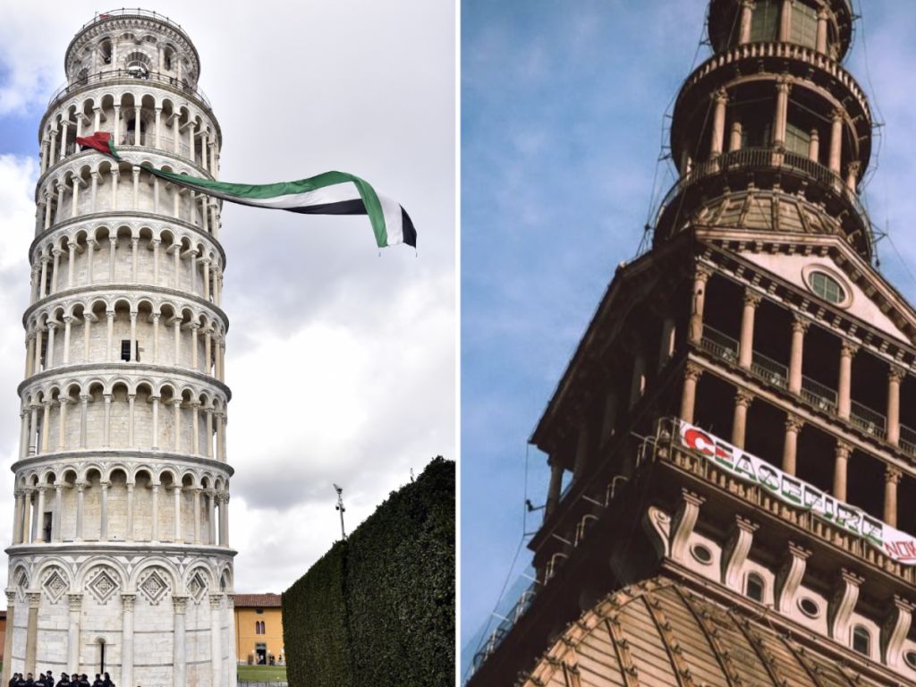 Une quinzaine d'étudiants adhérant à des mouvements antagonistes ont pénétré par effraction dans la Tour de Pise, contournant les contrôles de sécurité, et ont déployé un grand drapeau de la Palestine depuis le célèbre clocher.