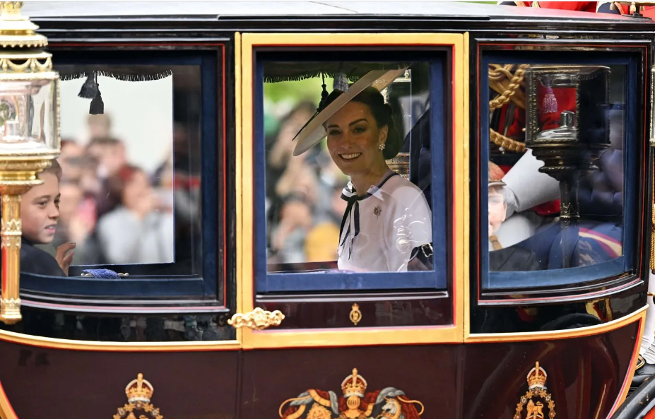 Kate Middleton, la princesse de Galles, qui a annoncé en mars être atteinte d'un cancer, est apparue ce samedi à l'occasion d'un défilé organisé à Londres pour l'anniversaire du roi Charles III. Il s'agit de sa première apparition publique depuis décembre.
