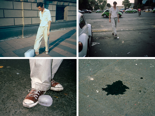 Ce sera à partir des années 90 que Francis Alÿs fonde sa pratique artistique sur le concept de l’errance et de la trajectoire tel que la marche. Cette forme de mobilité constitue pour lui une façon d’interroger la réalité à travers l’espace urbain, utilisé comme un immense laboratoire, afin d’en faire émerger les singularités, d’emprunter son anonymat, de travailler l’imperceptible. Ses actions sont aussi aléatoires que discrètes. Il déplace au minimum un acte du quotidien, élargissant une situation, en modifiant sa signification.