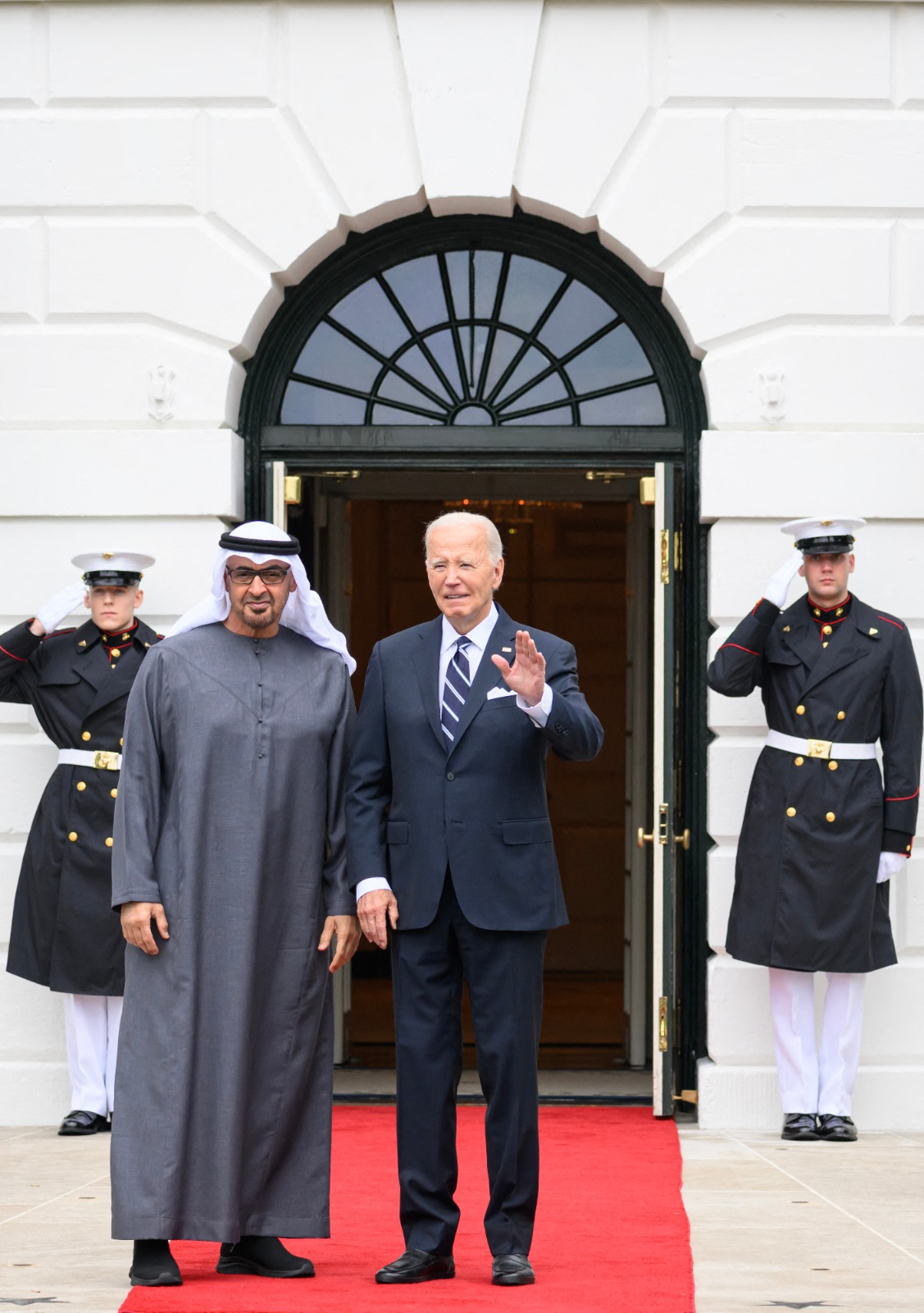 Le cheikh Mohammed ben Zayed Al Nahyan, président des Émirats Arabes Unis, a effectué aujourd'hui une visite officielle à la Maison Blanche, où il a été accueilli par le président américain Joe Biden.