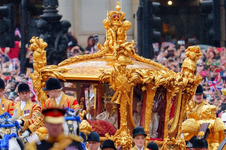 Après des heures d’attente, à 10 h 20 heure locale, la procession commence enfin. Entourés de soldats à chevaux, jouant des musiques militaires, Charles et Camilla parcourent le Mall dans le carrosse climatisé du jubilé de diamant d’Elizabeth II.