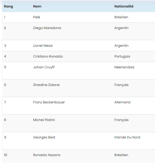 Nous vous présentons ici dix personnalités qui sont bien souvent reconnues comme les meilleurs joueurs de tous les temps, avec ce classement meilleur joueur du monde :