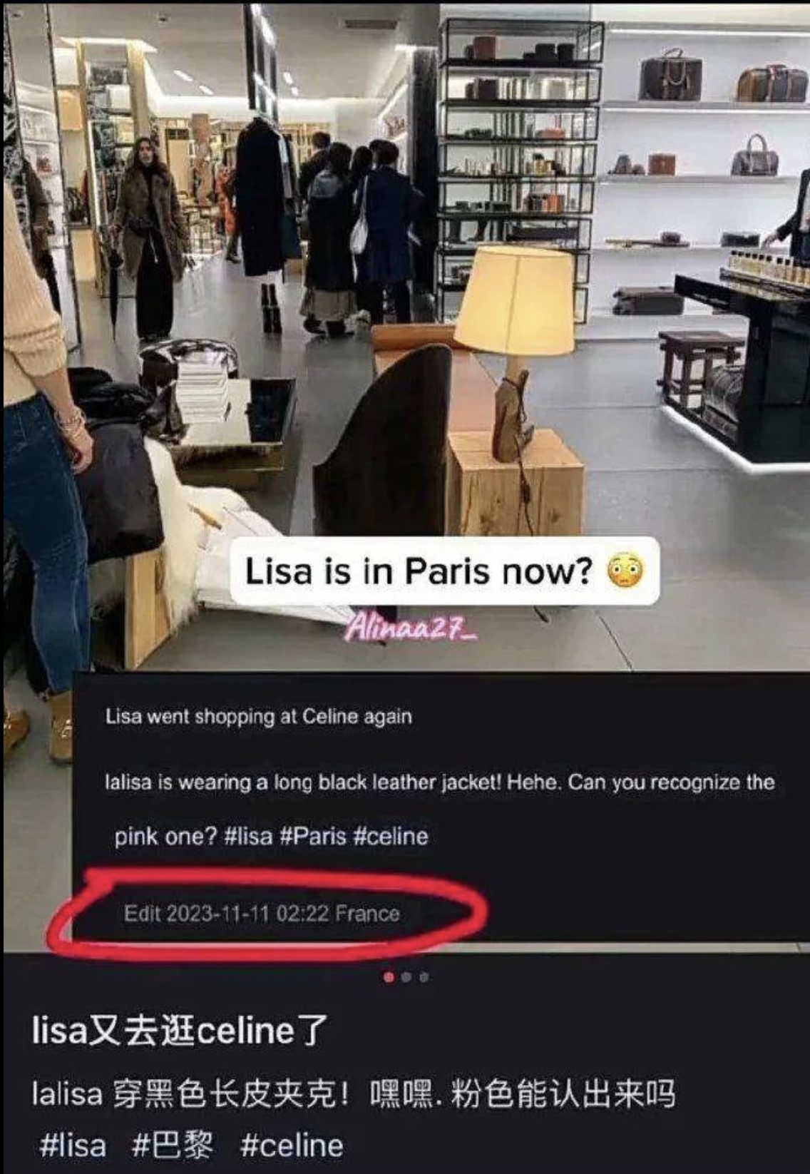 Selon d'autres sources, Lisa aurait voyagé à Paris à bord du jet privé de Frédéric, profitant même d'une journée de shopping joyeuse chez Céline, la marque qu'elle représente et qui appartient à la famille de Frédéric. Sohu avance l'hypothèse que Lisa et son petit ami présumé sont toujours ensemble.