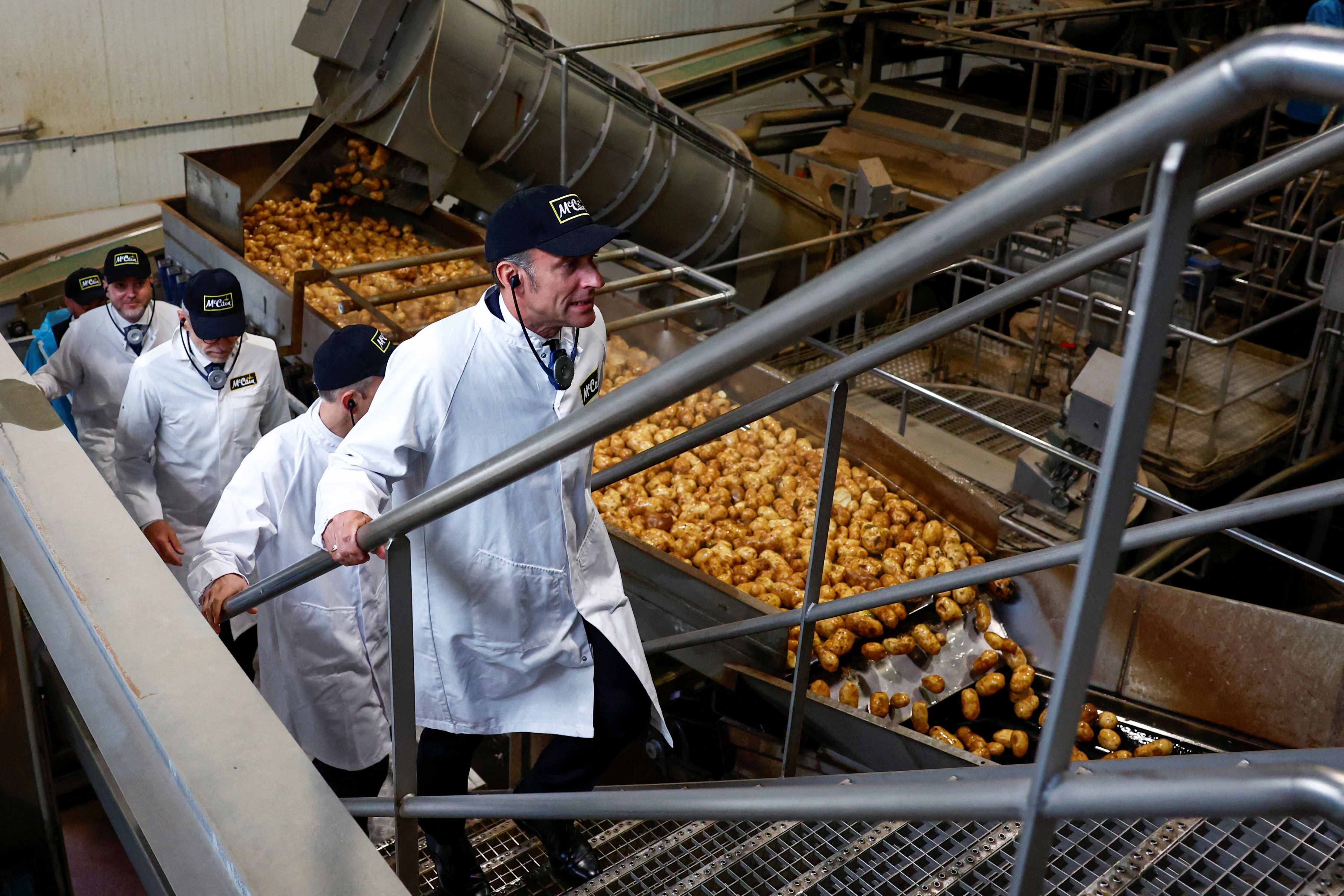 Vidéo Choose France. Macron visite une usine de frites dans la Marne