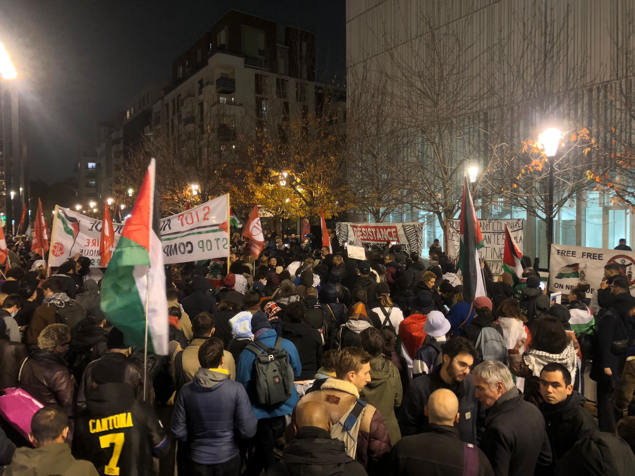 Au nom d'Urgence Palestine, qui appelait à manifester, Neva Bekhtari a lancé au micro: "Notre objectif est de dénoncer l'impunité d'Israël (...) accueilli les bras ouverts en France, même si grâce à notre pression, le ministre des Finances israélien (Bezabel Smotrich) n'est finalement pas venu" à Paris mercredi pour participer à un gala de soutien à Israël controversé, qui se tenait dans un lieu secret de la capitale.