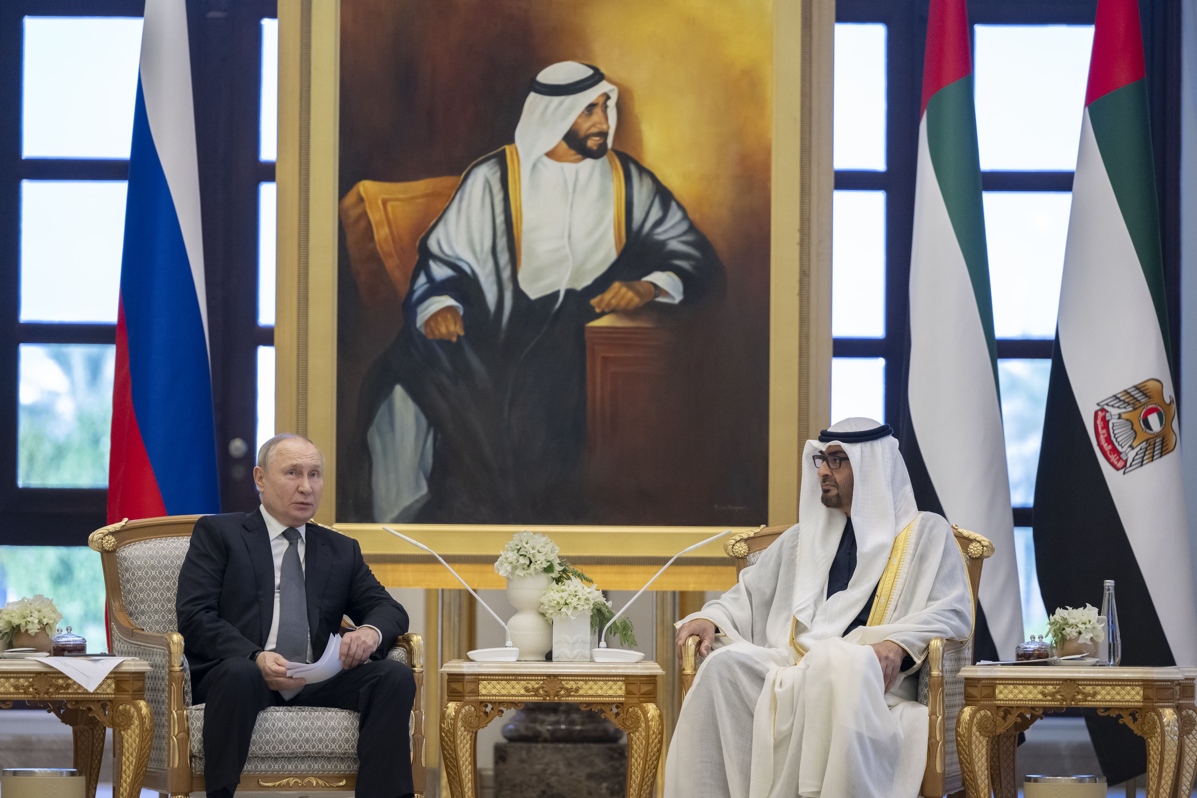Le ministère des Affaires étrangères des Émirats arabes unis a déclaré dans un communiqué consulté par Anadolu que le président Cheikh Mohammed ben Zayed Al Nahyan "a reçu aujourd'hui Vladimir Poutine, président de la Russie, en visite d'État aux Émirats".