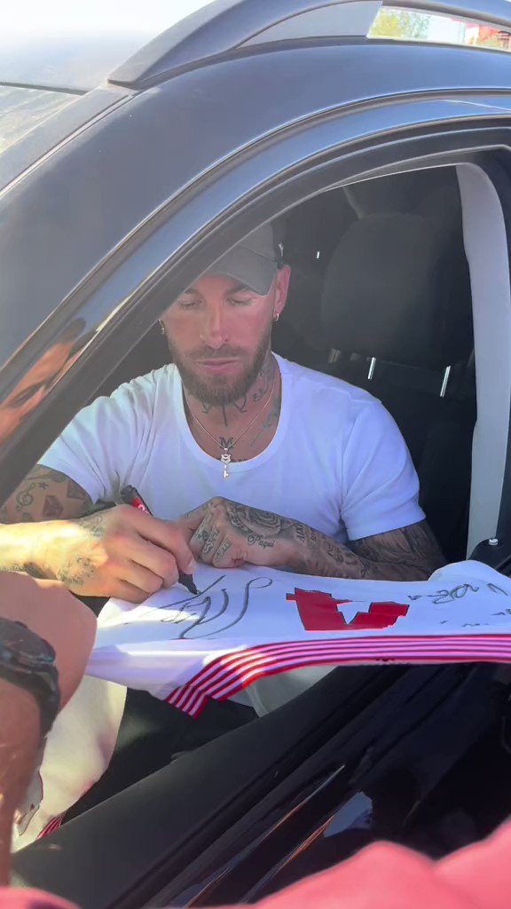 Cette scène a suscité l'intérêt des supporters madrilènes, car Ramos a pris le temps de signer des maillots de Séville et du PSG, repoussant à deux reprises un fan du Real qui a tenté sa chance.