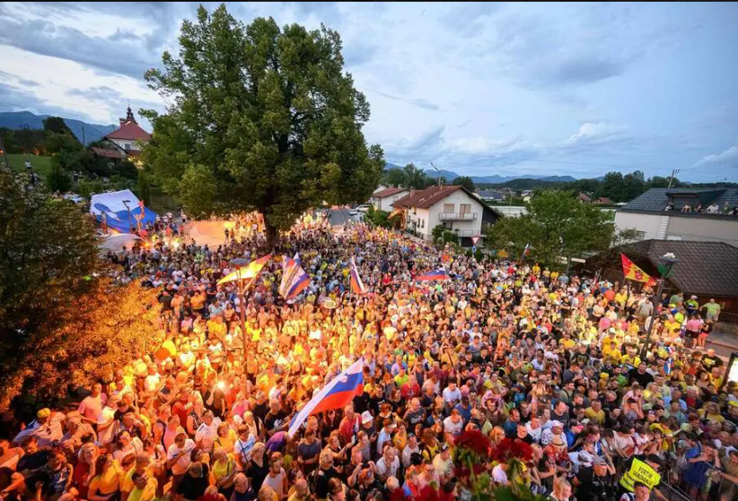 Vidéo. Cyclisme : Tadej Pogacar est célébré en roi dans sa ville natale en Slovénie