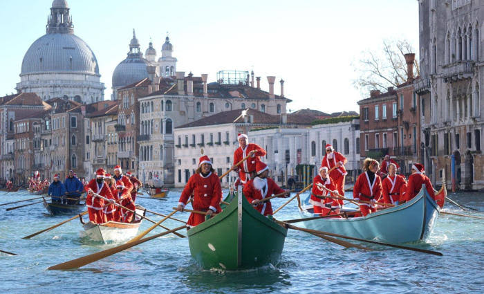 L'arrivée de Saint-Nicolas a lieu à Campo San Vio. Pour l'accueillir, tous les gondoliers portent des chapeaux rouges et décorent leurs gondoles avec des coussins et d'autres objets de Noël. C'est aussi l'un des moments les plus attachants pour se promener sur les canaux de Venise tout en s'imprégnant de l'esprit de Noël.