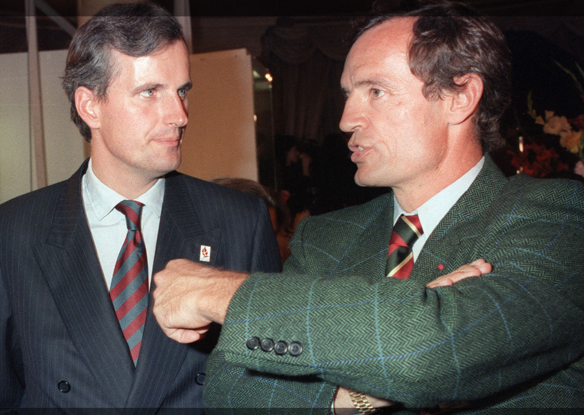Michel Barnier et Jean-Claude Killy le 17 octobre 1986 à Lausanne, après que le Comité International Olympique a annoncé qu’Albertville accueillerait les XVIes Jeux Olympiques d’hiver en 1992.Michel Barnier et Jean-Claude Killy le 17 octobre 1986 à