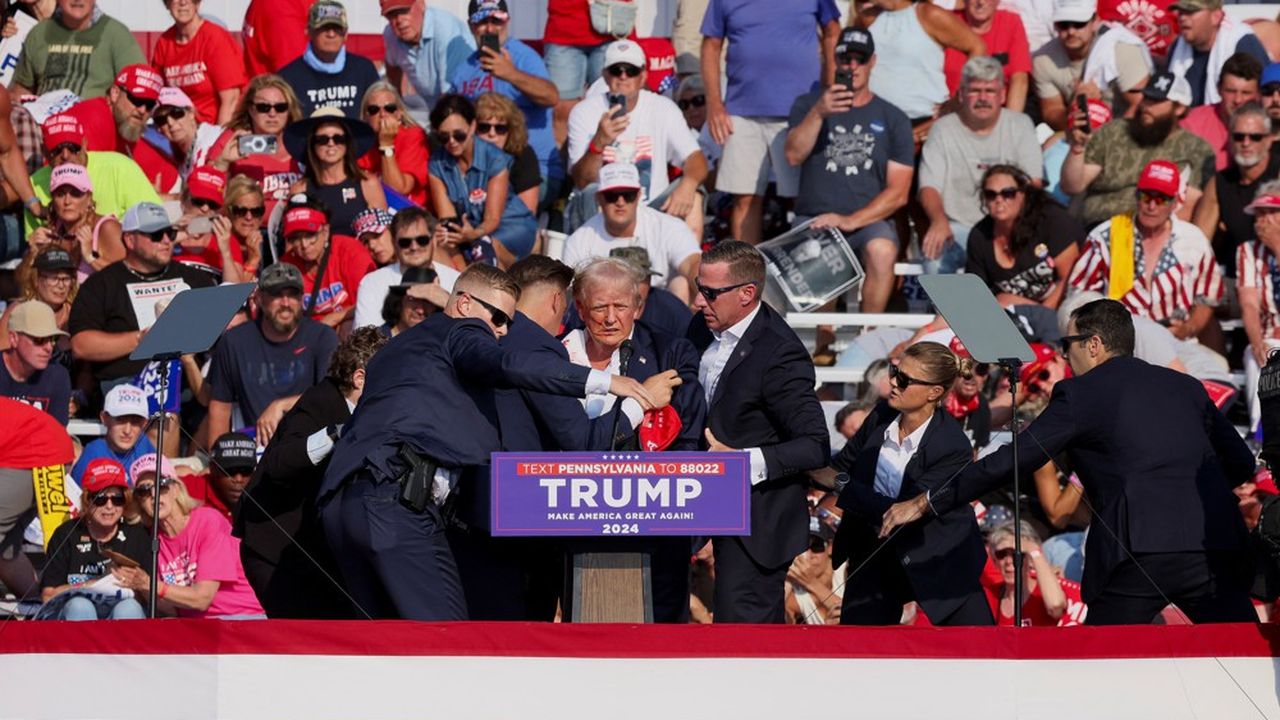 Des vidéos ont montré le corps inanimé du tireur, sur le toit d'un bâtiment à côté du terrain de la foire agricole de Butler, la petite ville où se déroulait le rassemblement : l'homme a été abattu presque immédiatement après avoir tiré.