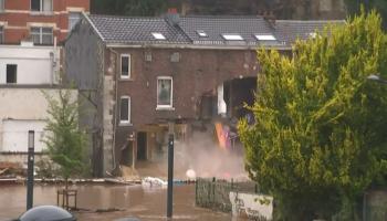 Une maison s'est effondrée sous les yeux de son maire alors qu'il était en pleine interview jeudi en Belgique.